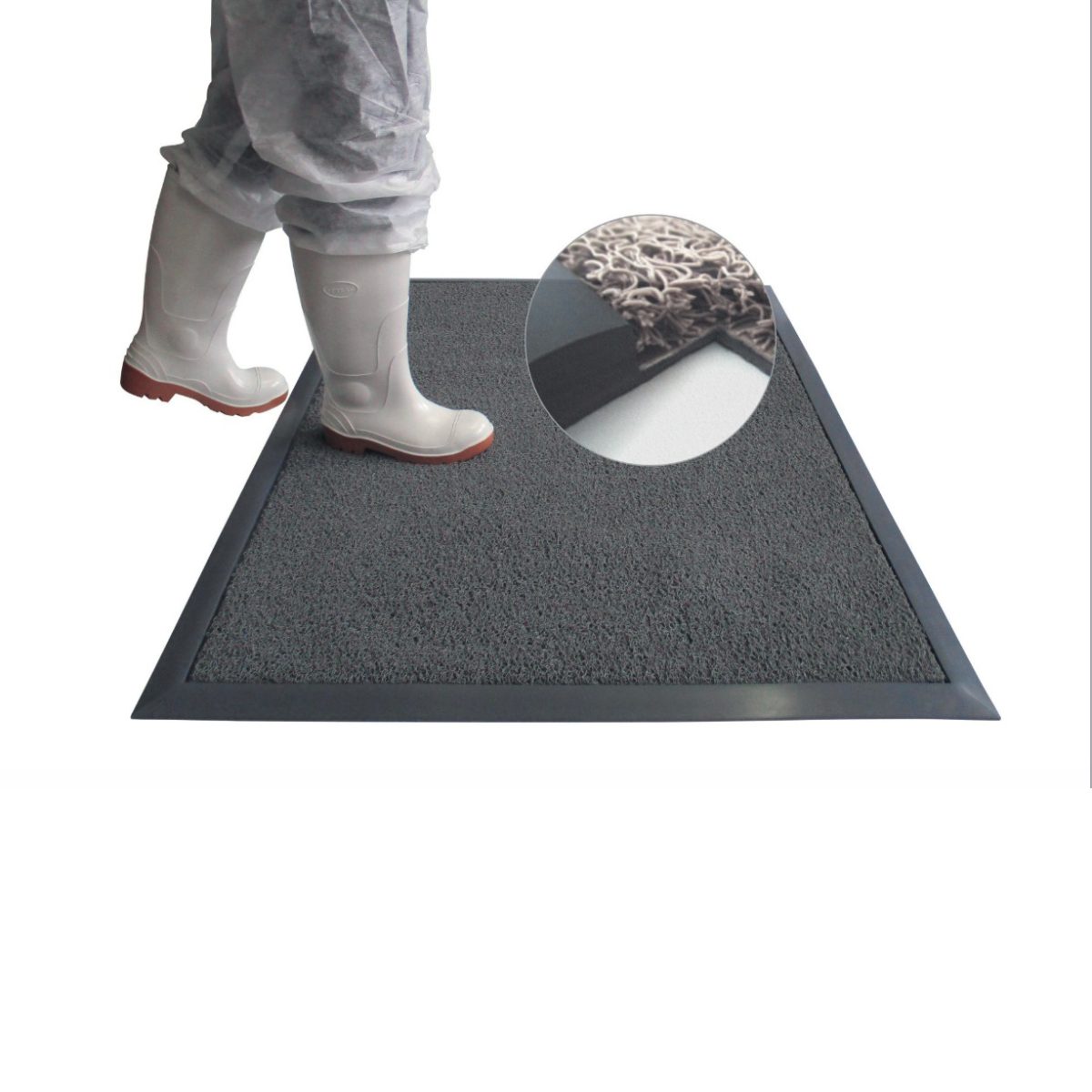 Дезинфекционный и грязезащитный мат с открытой петельчатой структурой снижает риск перекрестного загрязнения, дезинфицирует подошву обуви и колеса тележек. Dezmatta Custom разрабатывается по индивидуальным размерам под заказ.